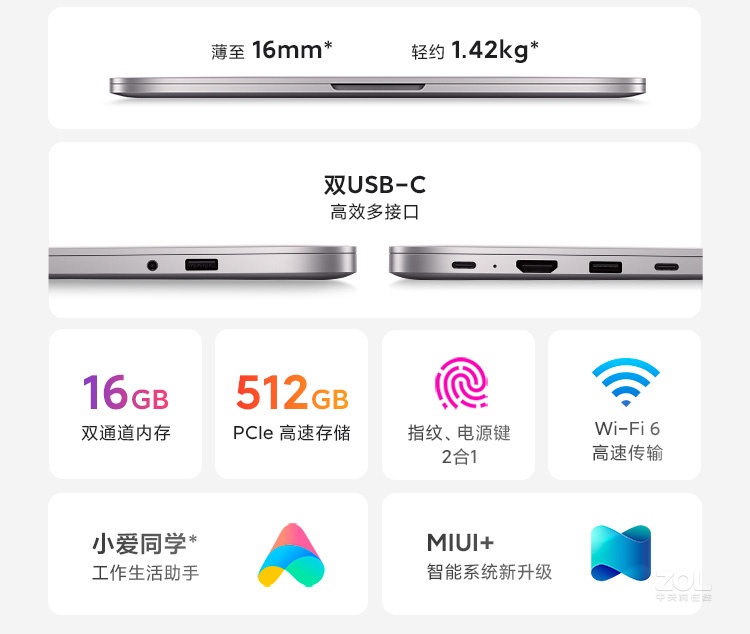 Genuine Office Home and Student Edition, DTS Audio Processing, Xiaomi Cloud Service, Xiaomi Computer Assistant*, Xiaoai Classmate, MIUI+,