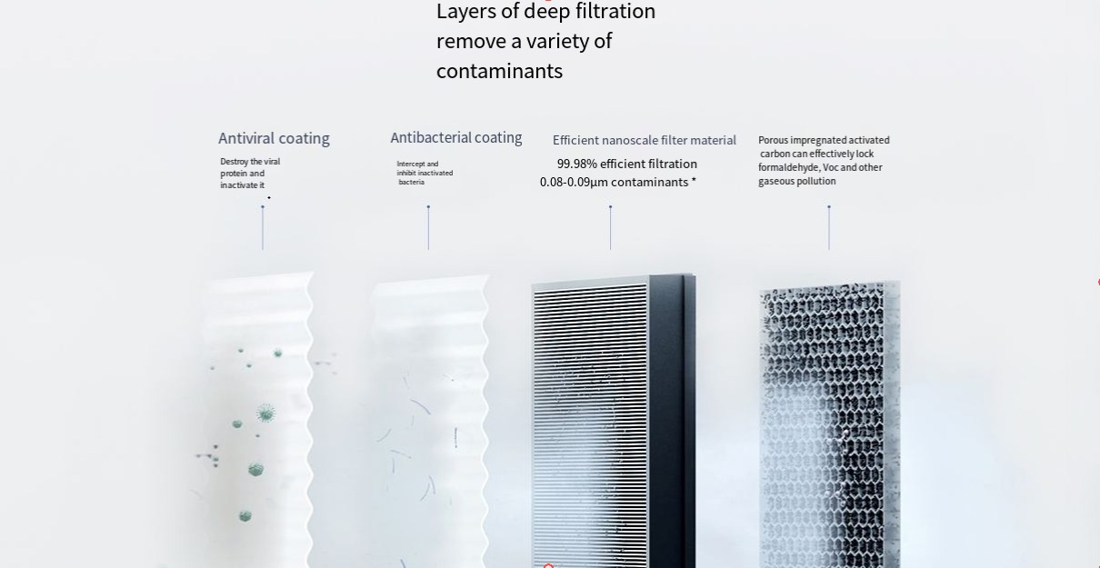 [Only applicable to Purifier 4 MAX] 4 levels of high-precision filtration to remove a variety of pollutants